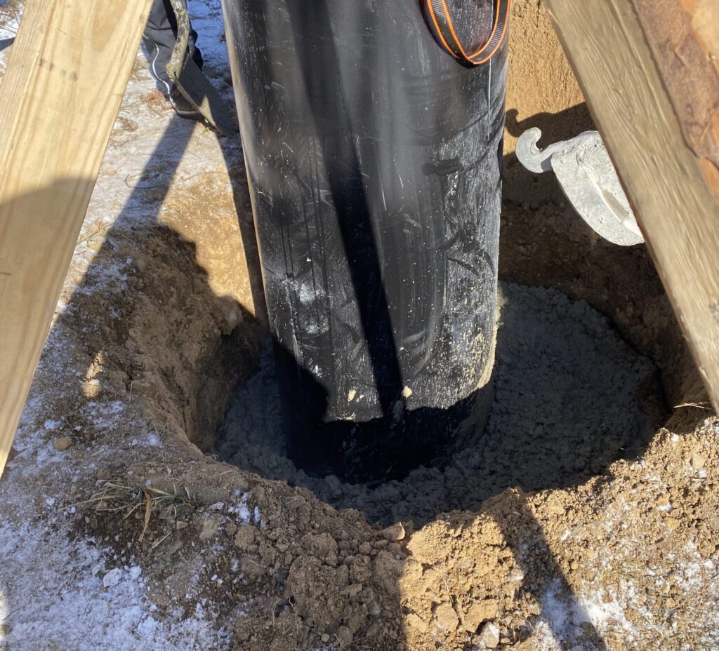 Agricultural foundations are installed using commercial-grade pressure drill rigs and auger drilling systems. This approach allows foundations to be drilled deeper rather than wider, reducing site disturbance while increasing vertical load capacity. Each site is evaluated to determine appropriate foundation depth and diameter based on structure size and soil conditions.